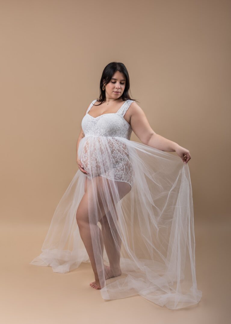 Des tenues sont proposées au studio pour vos séances grossesse. Toutefois, je vous invite également à apporter des vêtements qui vous ressemble afin d’avoir un plus grand choix lors de la séance. Voici quelques exemples d’affaires que vous pouvez apporter : une brassière, un jean, une robe, un perfecto, un blazer, une grande chemise, des sous-vêtements blancs et noirs pouvant passer plus inaperçus sous des voilages par exemple… En moyenne, nous effectuons 4 changements de tenues afin de varier les rendus.